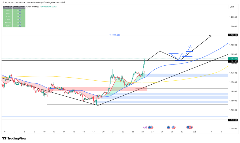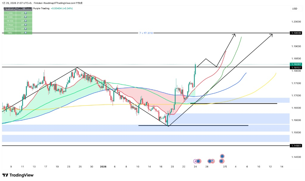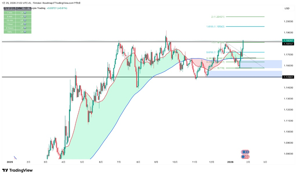 【ポイント】 1.1800という節目だったレジスタンスが、転換してサポートになっています。