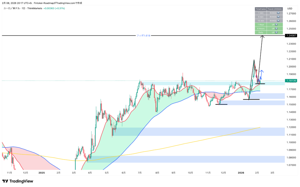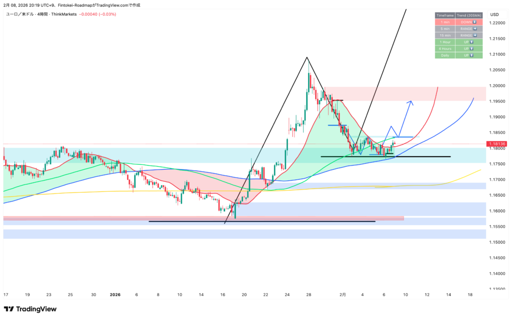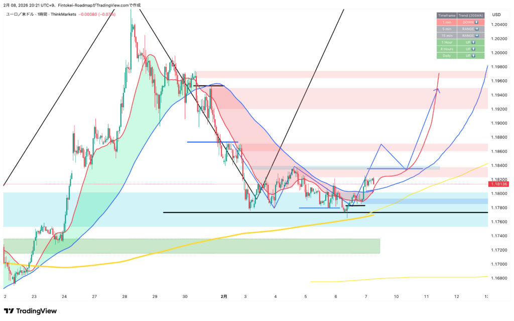 【EURUSD】来週のトレードシナリオ(2月9日週)|日足第3波の押し目に、1時間足の転換から乗る。