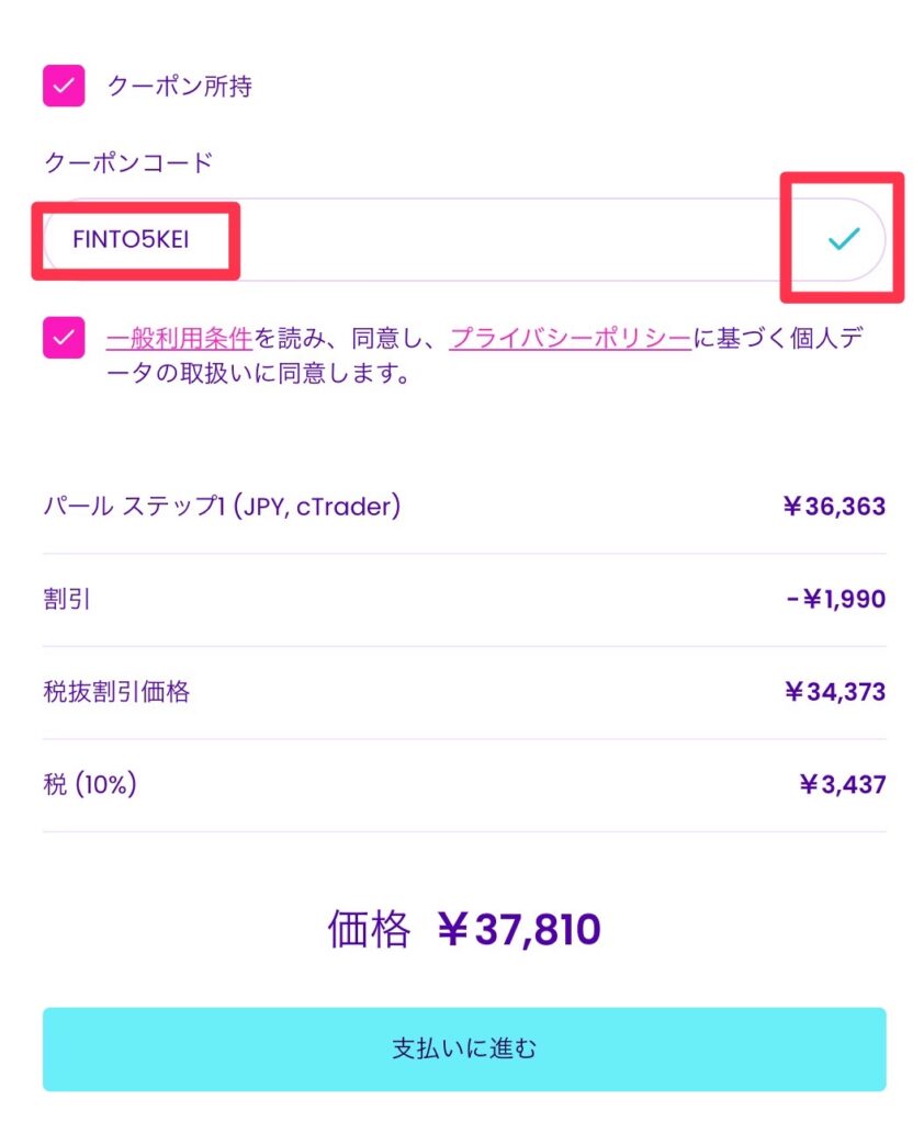 クーポンを入力して決済する