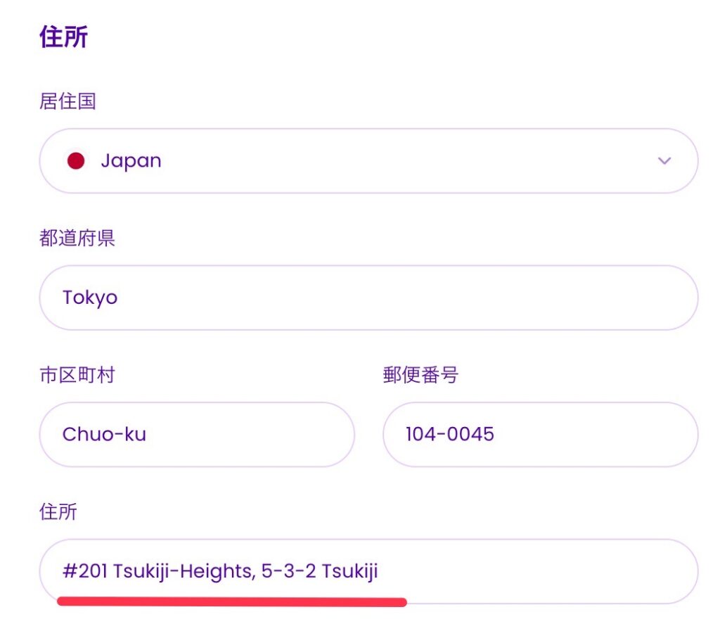 住所は本人確認書類(免許証など)と一致している必要があります。「引越し前の住所」などを書かないように注意しましょう。