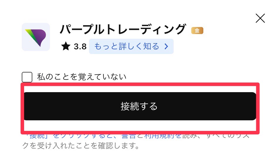 起動すると……TradingVierが開き、Fintokeiで先ほど開設したパープルトレーディングの口座へ接続手続きの画面が出てくるはずです。