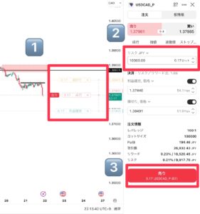 ・画面上の「買い」「売り」ボタンから直接エントリー可能。