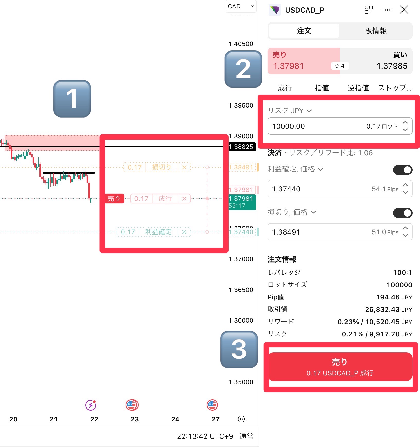 ロット計算をしている間に価格は伸び、焦りはピークに達します。