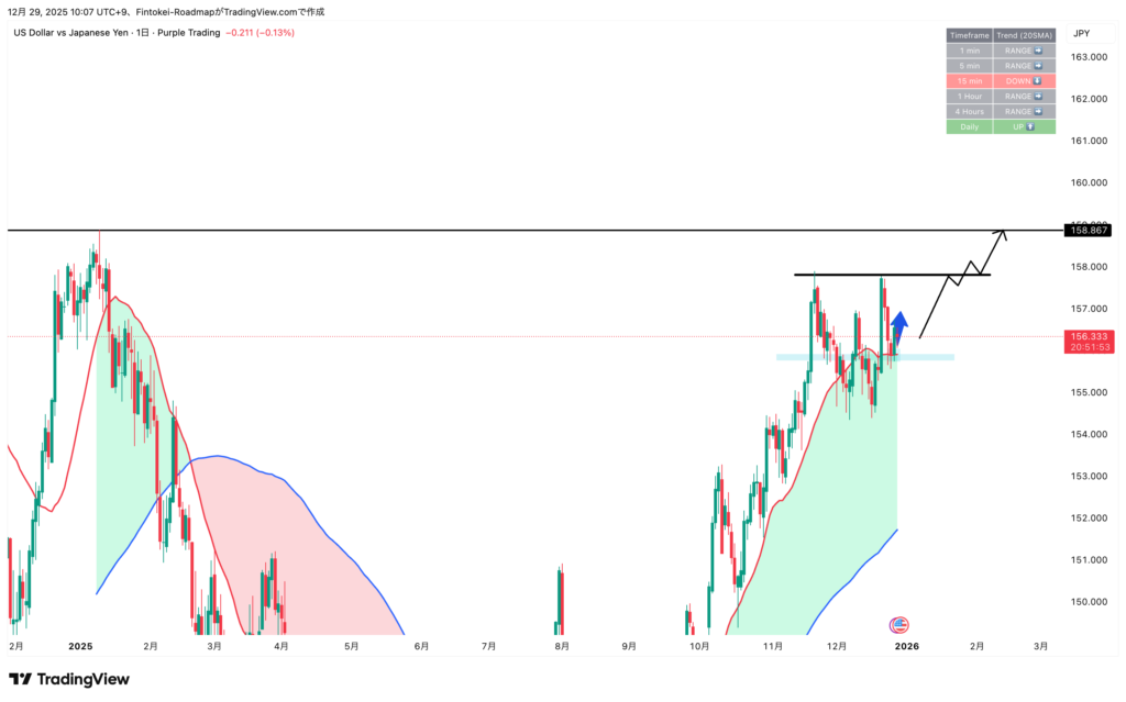 2025年12月29日のUSD/JPYのトレードについて、環境認識からトレードの結果まで残していきたいと思います。