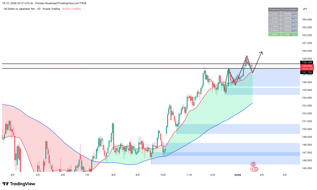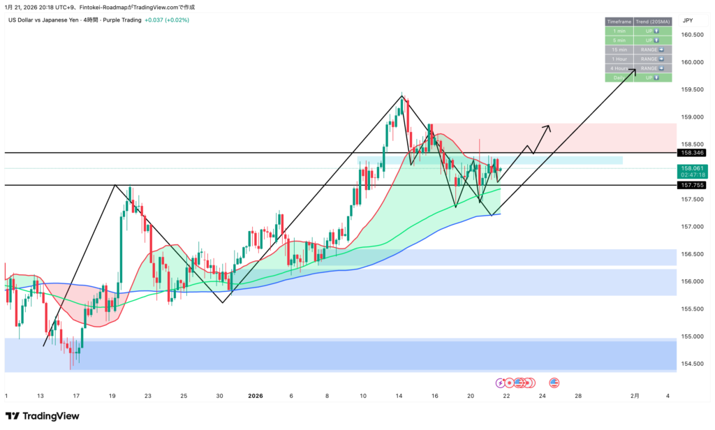 2026年1月21日のUSD/JPYのトレードについて、環境認識からトレードの結果まで残していきたいと思います。