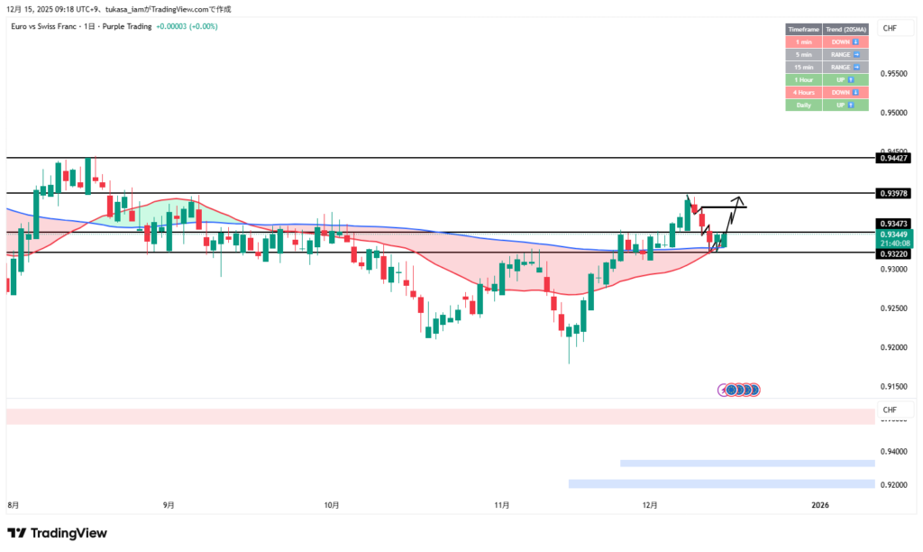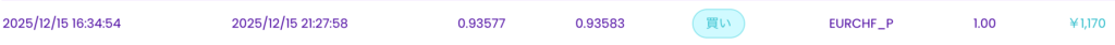 2025年12月15日のEUR/CHFのトレードについて、環境認識からトレードの結果まで残していきたいと思います。